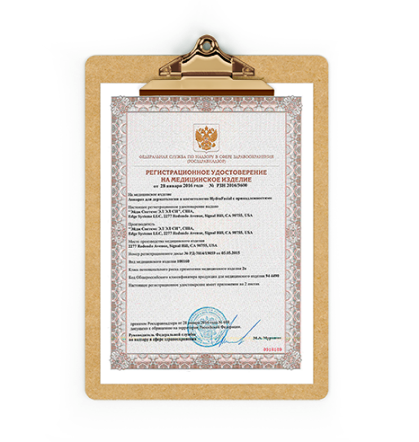 Аппарат имеет сертификацию FDA и ISO 13485 позволяет нам гордиться качеством аппаратов и расходных материалов HydraFacial®, которые тщательно тестируются перед поступлением на рынок. Продукция соответствует как стандартам США, так и международным стандартам, включая CE, UL и CSA. Имеет регистрационное удостоверение Росздравнадзора.